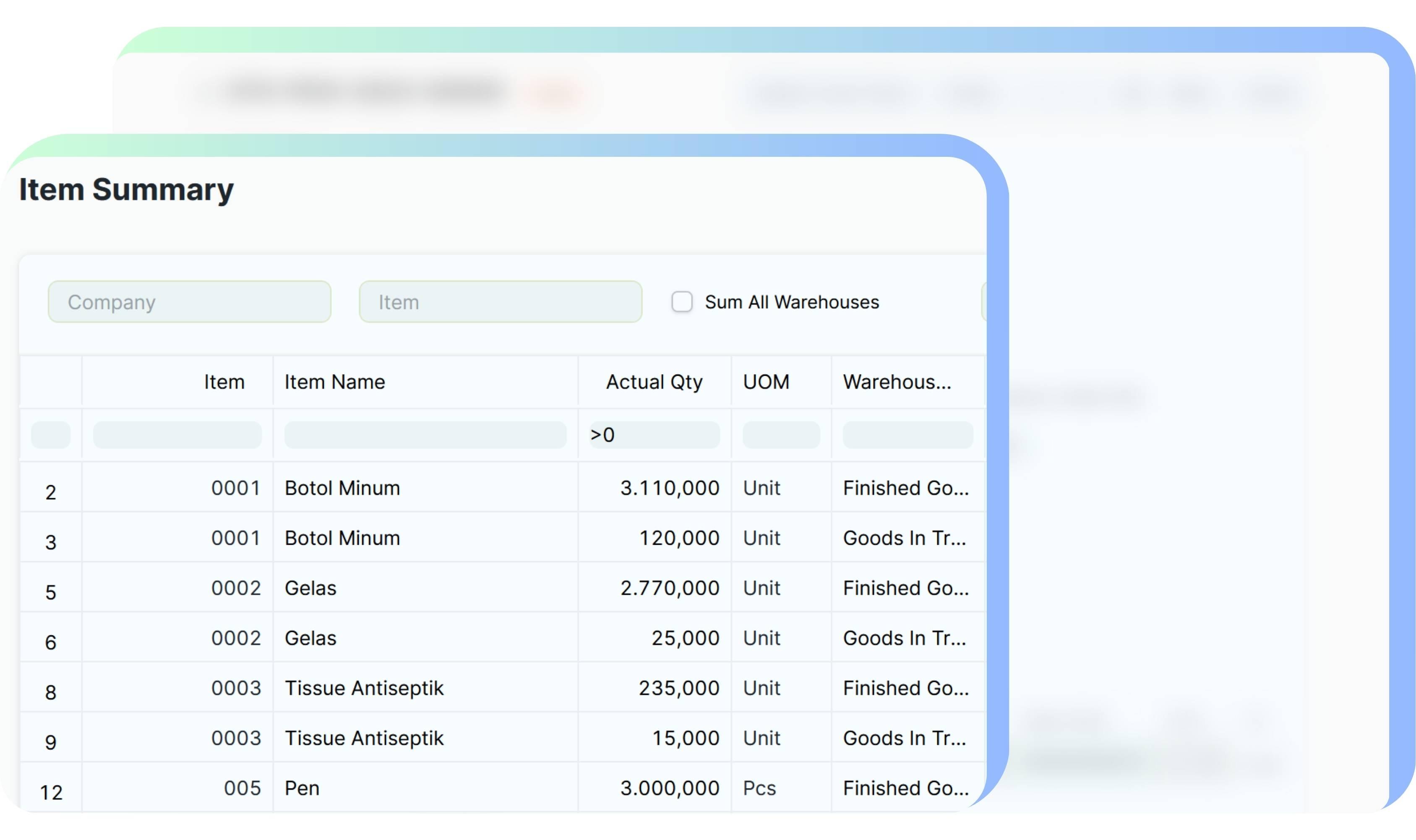 lihat informasi stok dengan cepat dari semua gudang tanpa harus pergi ke tiap tiap gudang, semua bisa dari satu dashboard.