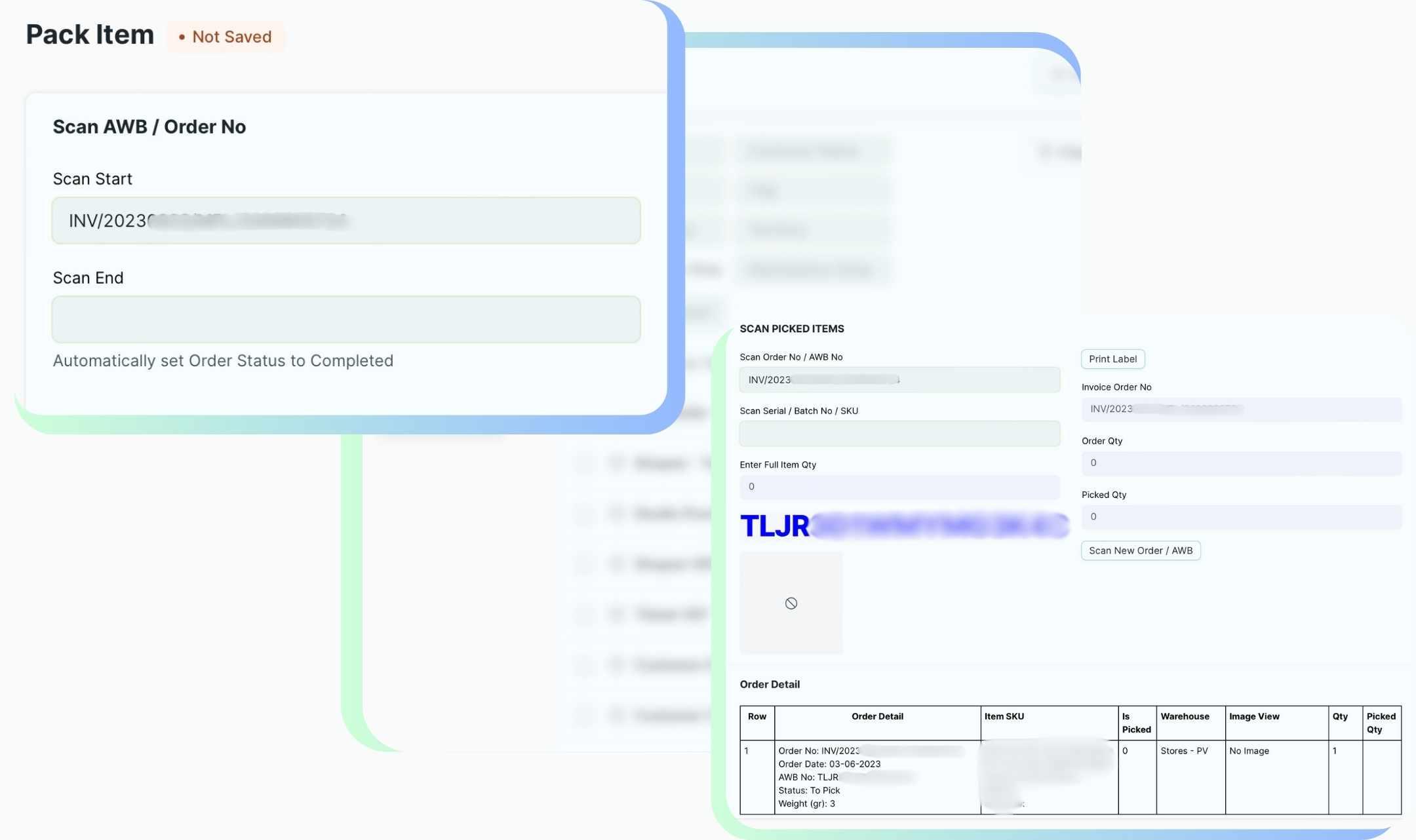 Scan setiap SKU atau Serial No dan validasi otomatis sehingga tidak ada lagi salah ambil barang, kurang ambil, atau lebih kirim.