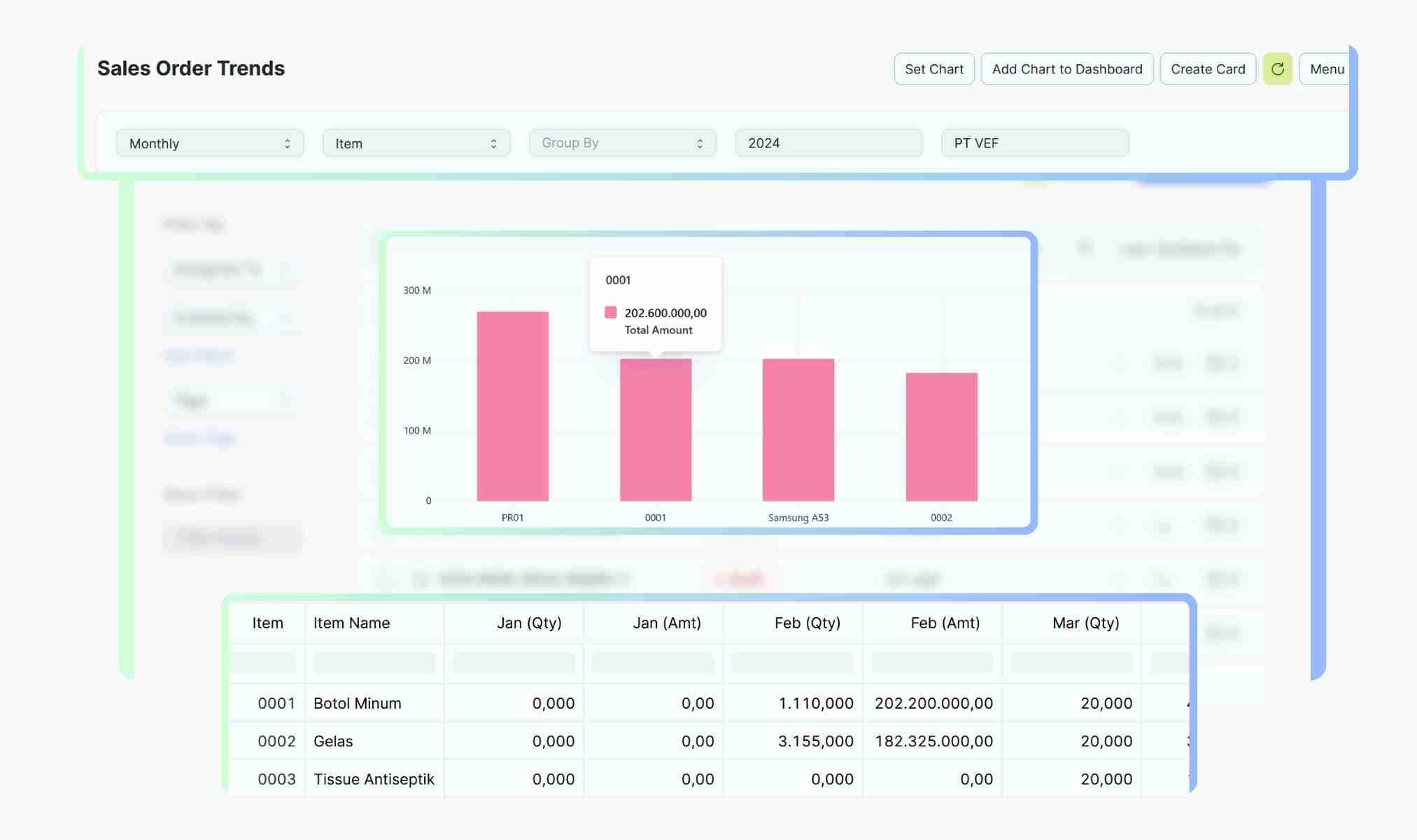 Fitur Sales Order Trends di VEF dirancang untuk membantu bisnis dalam memahami pola dan tren pesanan penjualan dari waktu ke waktu. Dengan informasi yang komprehensif dan visualisasi yang intuitif, pengguna dapat dengan mudah mengidentifikasi perubahan dalam perilaku pelanggan dan performa penjualan