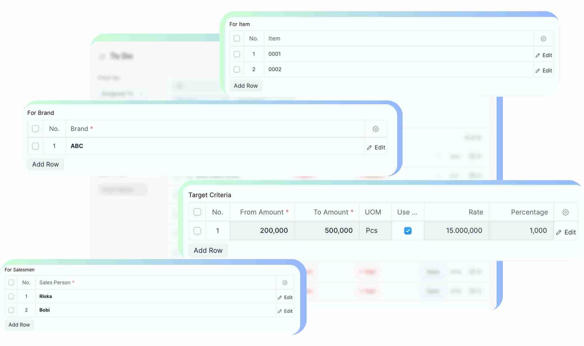 - Buat diskon per item, kategori atau merk ke pelanggan tertentu/grup pelanggan/global selama periode tertentu