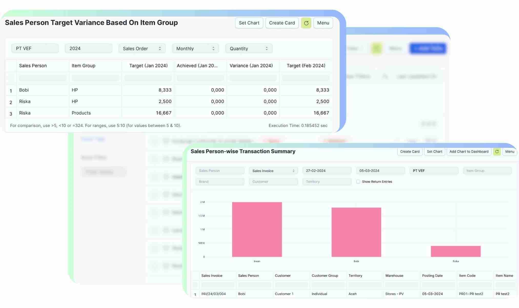 Fitur Sales Person-Wise Transaction Summary di VEF dirancang untuk memberikan gambaran lengkap tentang kinerja individu anggota tim penjualan. Dengan tampilan yang terperinci dan mudah dipahami, fitur ini membantu manajer penjualan dalam mengevaluasi dan mengelola performa setiap anggota tim.