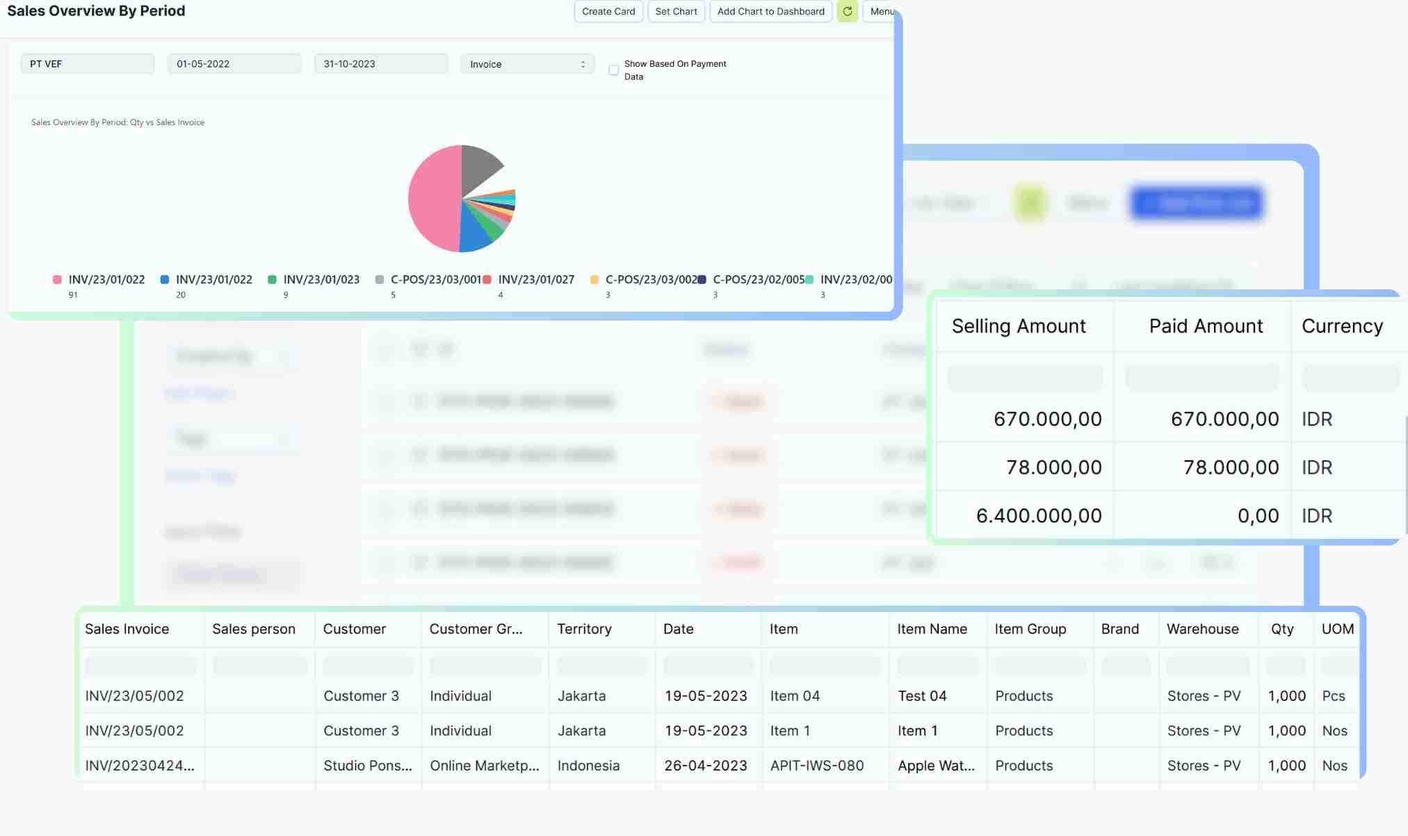 Fitur Sales Overview by Period di VEF memberikan gambaran menyeluruh tentang performa penjualan dalam berbagai periode waktu. Dengan tampilan yang jelas dan terorganisir, pengguna dapat dengan mudah mengakses data penjualan yang penting untuk berbagai rentang waktu yang diinginkan.