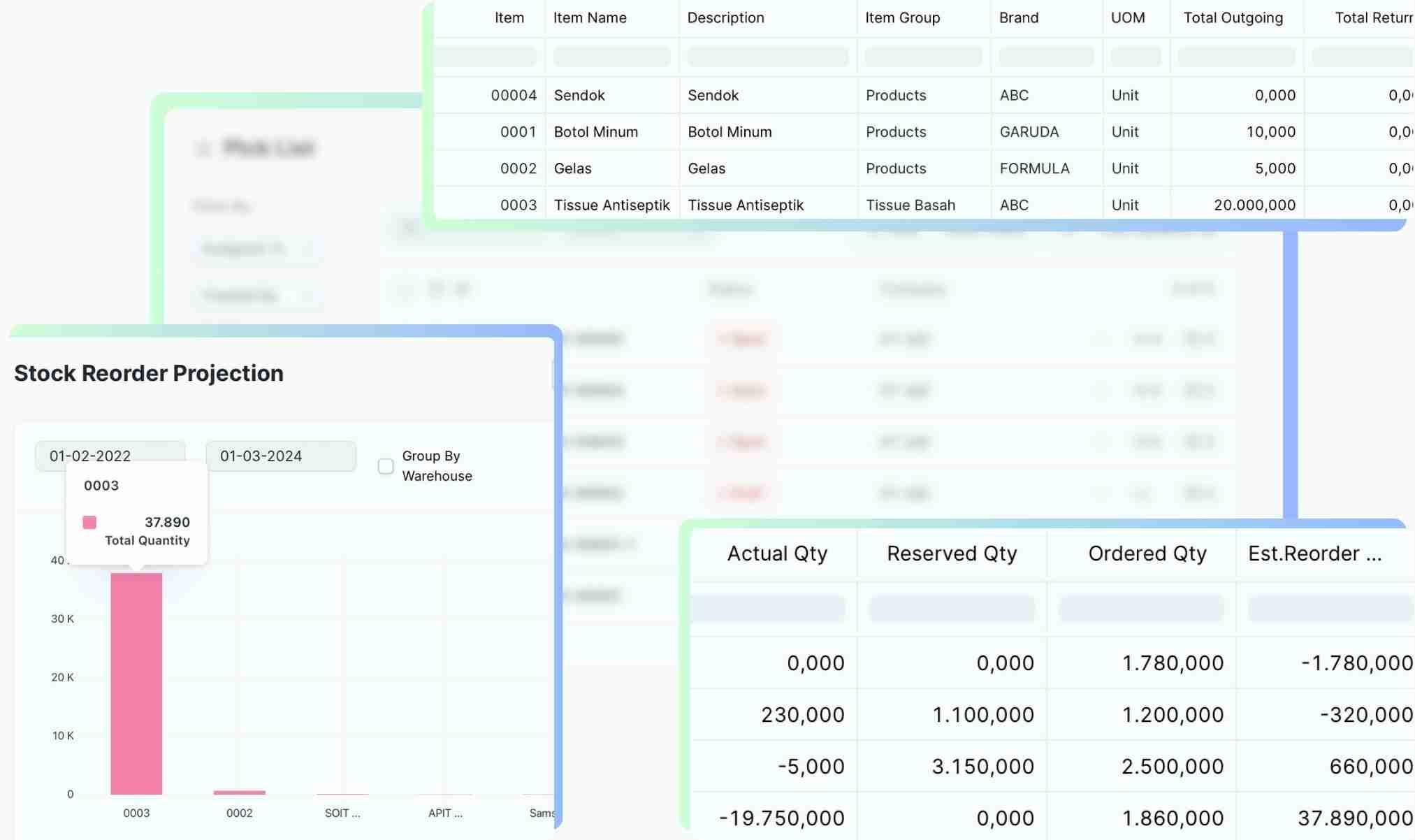 Ga perlu ribet lagi buat hitung jumlah stok barang yang cukup dan antisipasi potensi jumlah permintaan barang yang meningkat tinggi atau proses pengiriman barang yang cukup lama dengan fitur Reorder Projection dari VEF.