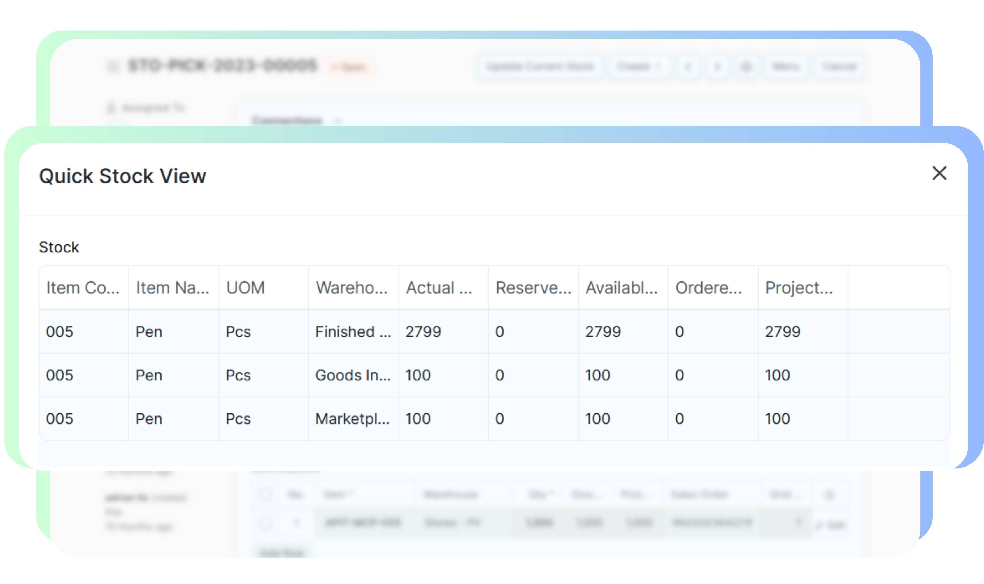 lihat informasi stok dengan cepat dari semua gudang langsung di form transaksi